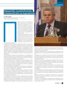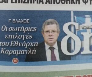 Άρθρο μου στην εφημερίδα Δημοκρατία για τις σωτήριες επιλογές του Εθνάρχη Καραμανλή, με αφορμή τη συμπλήρωση 47 χρόνων από την επιστροφή του και την αποκατάσταση της Δημοκρατίας στη χώρα μας. Το άρθρο δημοσιεύτηκε και στο περιοδικό της Βουλής “Επί του Περιστυλίου”.