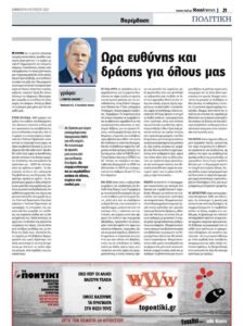 Ας δείξουμε συμπεριφορά που να πείθει τους πολίτες για το πραγματικό ενδιαφέρον του συνόλου των ηγεσιών.